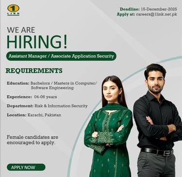 · Apply at: careers@1link.net.pk