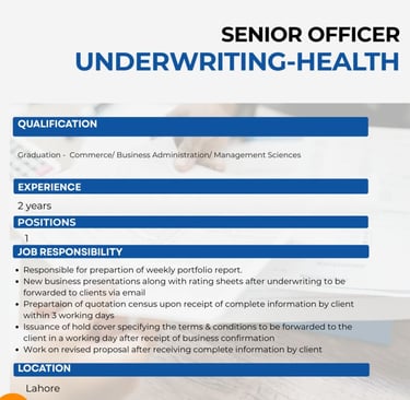 Adamjee Insurance Company Jobs Senior Officer Underwriting Health:
