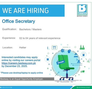 Interested candidates may apply online by visiting our careers portal https://careers.bestway.com.pk by December 23, 2025.