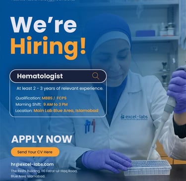 Excel Labs is looking for a qualified and experienced Hematologist to join our team at the Main Lab, Blue Area, Islamabad.