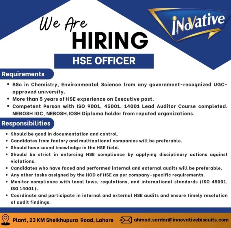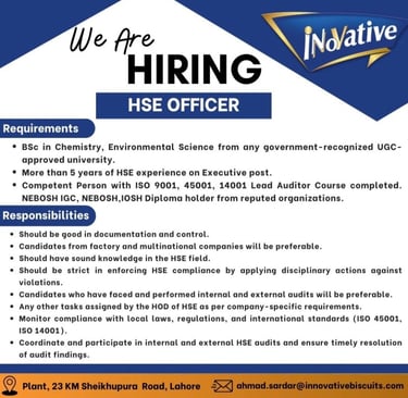 Innovative Biscuits Pvt Ltd Jobs HSE Officer