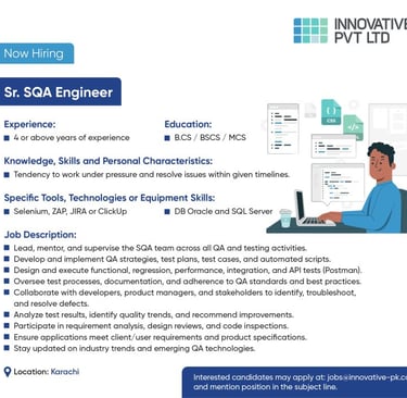 Innovative Pvt Ltd Jobs Sr SQA Engineer