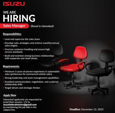 Think you’re the right fit? Send us your CV today at isuzufederalmotors@gmail.com