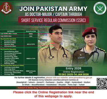 · Join Pakistan Army as GDMO & Specialist December 2025 / 2026 Online Registration through Short Service Regular Commission