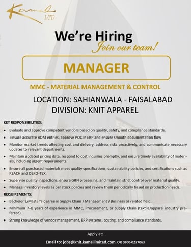 Kamal Limited Jobs Manager MMC :