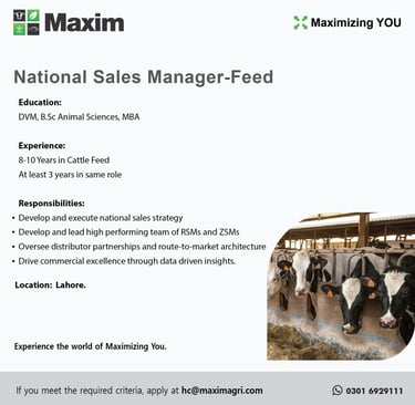 Maxim Agri is looking for candidates for the position of National Sales Manager-Feed.
