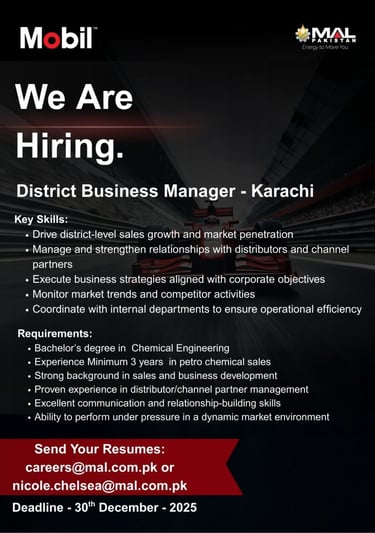 Mobil / MAL Pakistan Jobs District Business Manager: