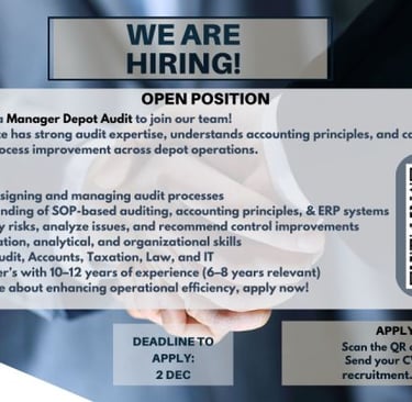 If you have strong audit expertise, a passion for strengthening internal controls, and experience driving compliance across operations,this is your opportunity to join a dynamic and growing organization.