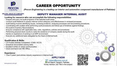 Procon Engineering Jobs Deputy Manager Internal Audit:
