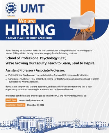 📩 Apply at: careers.faculty@umt.edu.pk
