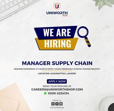 Uniworth, a leading menโs wear retail brand, is hiring for a ๐๐๐ง๐๐ ๐๐ซ ๐๐ฎ๐ฉ๐ฉ๐ฅ๐ฒ ๐๐ก๐๐ข๐ง.