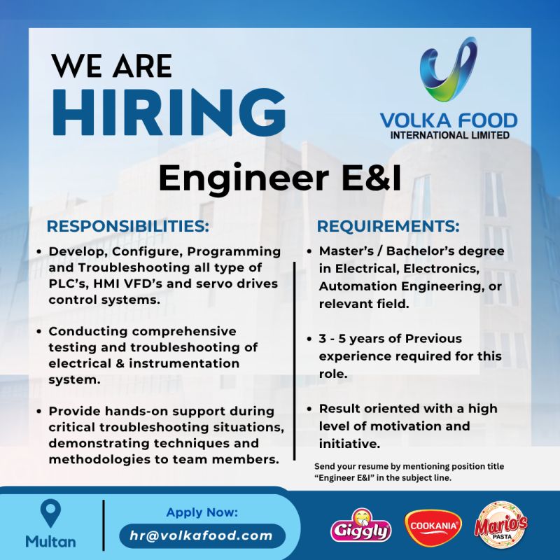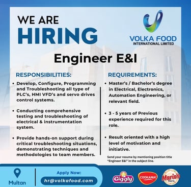 Organization: Volka Food International Limited Jobs Engineer E&I
